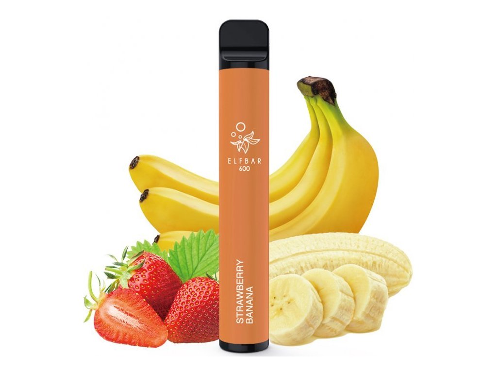 Naprosto bombová a lahodná kombinace sladkých jahod a banánu... Elf Bar 600 je jednorázová elektronická cigareta s liquidem SALT 20mg s vestavěnou cartridgí o objemu 2ml...