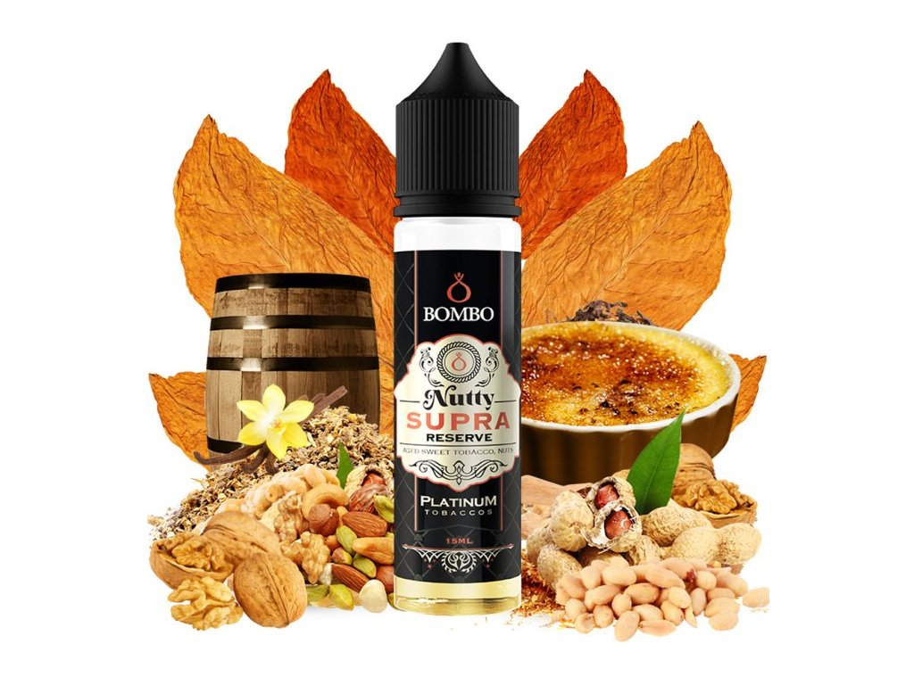 Příchuť Bombo Platinum Tobaccos S&V 15ml Nutty Supra Reserve (Tabák s karamelem a oříškovým máslem)