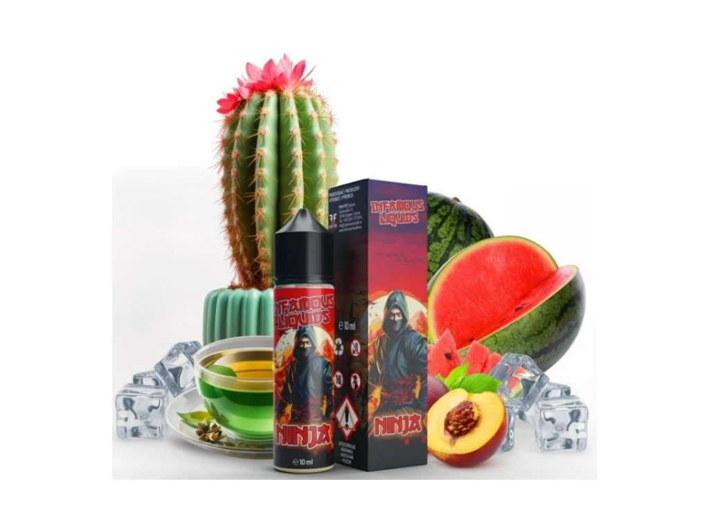 Kombinace šťavnatého vodního melounu, exotického kaktusu a sladké broskve s tóny zeleného čaje... Chorvatský výrobce Infamous se specializuje na výrobu prémiových e-liquidů a aromat s tradicí od roku 2013. Jsou dodávány ve 60ml Chubby Gorilla lahvičkách, které obsahují 10ml koncentrátu. Uživatel tak pouze přidá bázi do lahvičky, zatřese s ní a má hotový e-liquid.Výroba probíhá za nejpřísnějších hygienických standardů ve farmaceutické laboratoři. Jedná se o koncentrát, který se kape do báze. Příchuť může být použita pouze jako aroma do bází....nejedná se o hotový liquid.